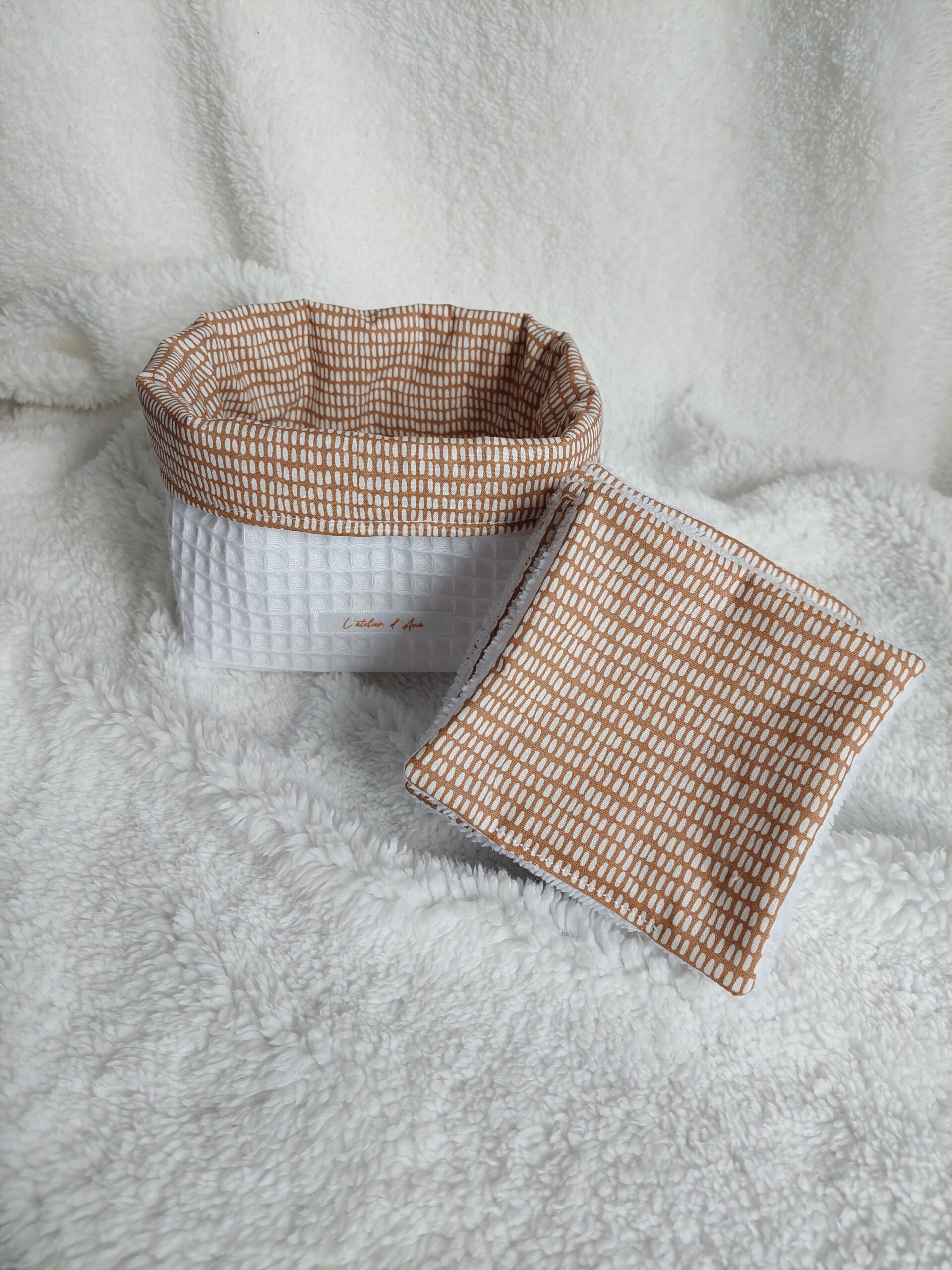 Un Panier (env 13cm déplié et 9cm avec le bord plié) avec 7 lingettes (10 cm x 10 cm)